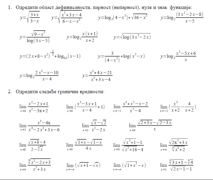 oblast definisanosti, znak i nule funkcije ; granicna vrednost